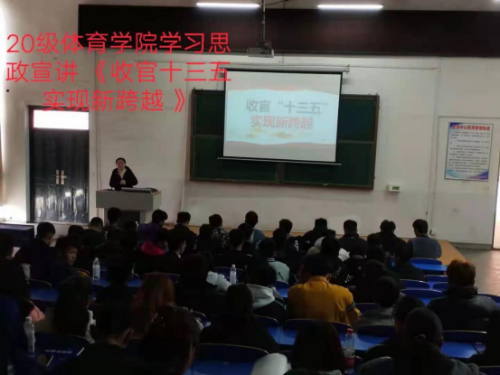 4月23日下午思政宣讲团成员、思政部教师邹红双在开元校区五区三楼多媒体教室开展以《收官“十三五” 实现新跨越》为主题的形势与政策专题讲座。来自体育学院2020级的学生参加了本次讲座。