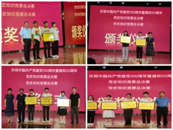 为庆祝中国共产党成立100周年暨建校20周年,6月12日下午,周口职业技术学院在学前艺术演播厅举办了“永远跟党走 奋斗新征程”党史知识竞赛总决赛,校党委副书记赵振然、副校长李明臣及二级教学院部领导及思政部全体教师、学生代表200多人一起观看了现场比赛,2000余名师生同步收看现场直播。