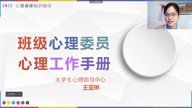 为强化“校-院-班-寝”四级心理危机预防干预工作机制,帮助心理委员和心理信息联络员更好的开展朋辈互助,以帮助同学们在疫情封校期间做好心理调适,2022年4月6日,周口职业技术学院心理指导中心联合学生处,开展线上心理委员培训,本次培训由心理指导中心王亚琳老师主讲。