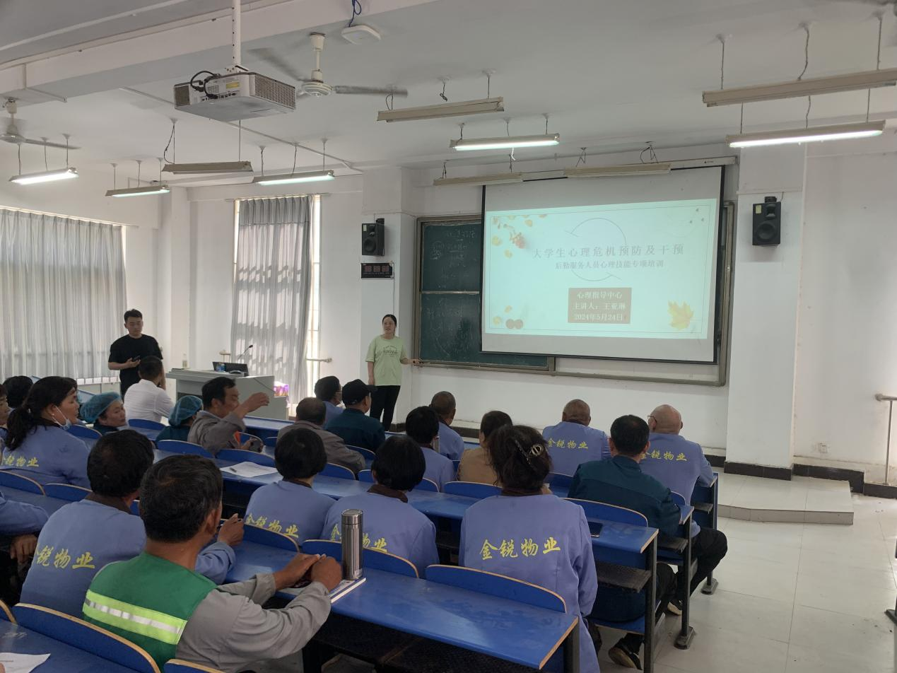 周口职业技术学院中州校区于2024年5月9日成功开展了后勤服务人员心理相关知识培训。此次活动由心理指导中心的资深教师王亚琳主讲,旨在提升后勤服务人员的心理适应能力和工作满意度,同时增强团队凝聚力,为学院师生提供更加优质的服务。
