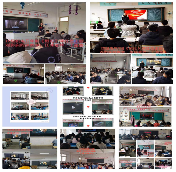 为庆祝中国共产党成立100周年,回顾党的光辉历程,继承和发扬党的优良传统,引导青年学生听党话、跟党走,厚植爱国主义情怀,根据省委关于庆祝中国共产党成立100周年相关文件精神,结合本学期《毛泽东思想和中国特色社会主义理论体系概论》课实践教学实际,思政部“概论”教研室于3月15日-3月31日组织任课教师开展“重温红色经典 铭党恩跟党走”主题观影实践教学活动。