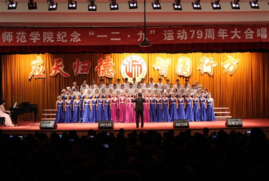 12月8日到9日晚,在文化路校区大礼堂举办的纪念“一二·九”运动79周年大合唱比赛中,开云官网代表队凭借精湛的技艺,完美的表现,喜获大赛优秀奖的佳绩。