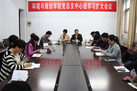 4月25日上午,环境与规划学院党总支在3号楼会议室召开中心组学习扩大会议。第三督导组组长、副校长程印学,机关党委书记刘继英出席会议,该院领导班子全体成员及部分教工参加了会议。会议由党总支书记王东平主持。
