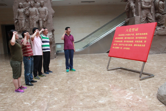 在纪念馆大厅内,领誓人史本林带领教师党员代表,在鲜红的党旗前坚定地举起右手,重温入党誓词,缅怀革命先辈的丰功伟绩。“我志愿加入中国共产党,拥护党的纲领,遵守党的章程……”这铿锵有力的誓言使每一位党员再一次接受心灵的洗礼,进一步坚定为共产主义事业奋斗终身的信念。宣誓结束后,党员教师代表仔细观看了纪念馆内的文字介绍、图片、影像和珍贵实物,学习了革命先辈的伟大精神,接受爱国主义和革命传统教育。