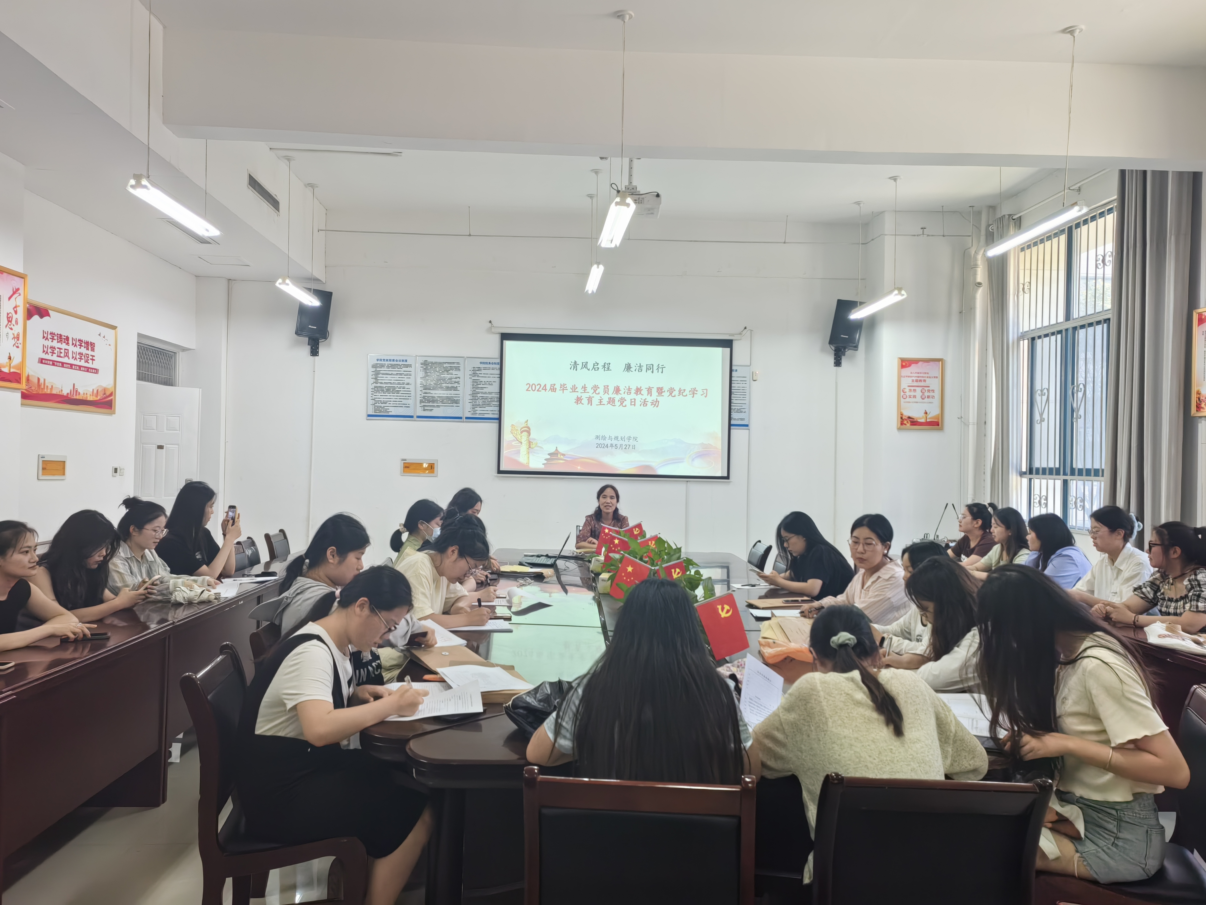 5月27日,开云kaiyun官方网站在三商楼134会议室开展“清风启程,廉洁同行”毕业生党员廉洁教育暨党纪学习教育主题党日活动,2024届全体毕业生党员参加,活动由学院党委副书记王丽主持。