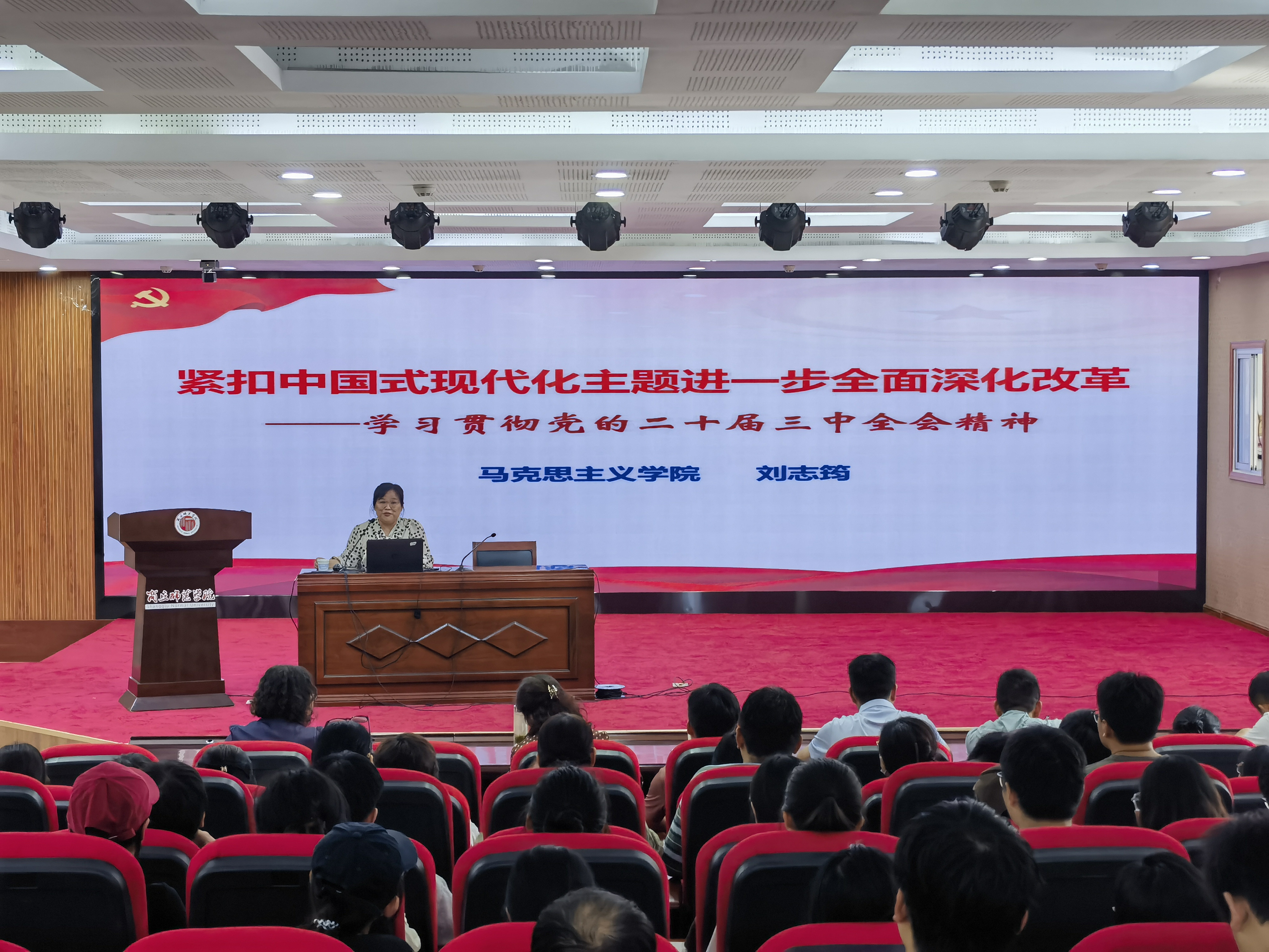 会上,刘志筠首先从改革开放以来的十次“三中全会”讲起,指出党的二十届三中全会的重大意义;接着,阐释了中国式现代化的定义和五大特征,明确了中国式现代化对进一步全面深刻改革提出的新要求;最后,刘志筠结合案例详实地讲解了进一步全面深化改革,推进中国式现代化的重要部署。