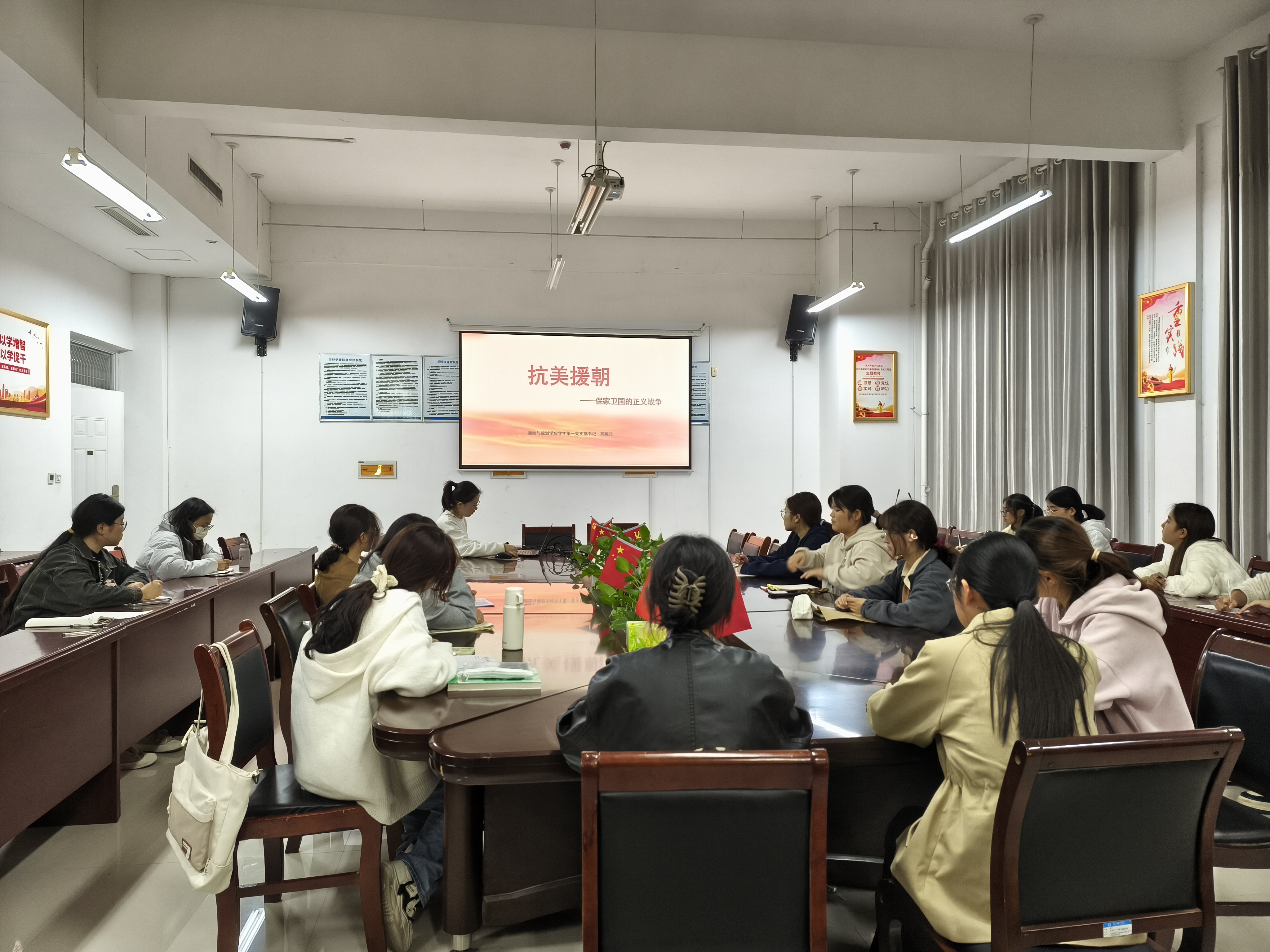 10月28日,学生第一党支部书记苏婉月以《抗美援朝——保家卫国的正义战争》为题讲授了党课。