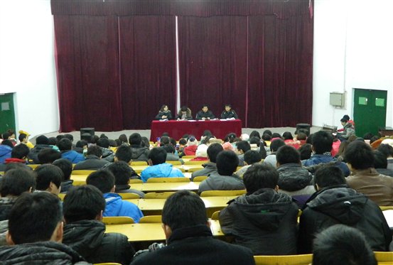 12月20日,环境与规划学院在文化路校区大学生文工团举行英语四、六级考试考风考纪动员暨安全教育大会。学院党总支副书记郑颖贞,团总支书记李琳,辅导员老师魏理、史彩霞出席动员大会。会议由李琳主持。