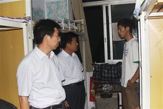 领导深入宿舍与新生们进行了亲切的交谈,了解他们的入住情况,并对有困难的学生给予了及时的帮助。王东平书记认真细致的询问了每位学生的家庭情况,对学生提出的问题进行了一一的解答,并对家庭有困难的学生讲解了有关贷款的问题;史本林院长告诫他们,要珍惜大学的四年时光,即使进入了大学,也不能放松学习;郑颖贞副书记希望同学们尽早实现从家庭生活到学校生活的转变,培养自己的自立能力;魏理老师告诉同学们在宿舍里要注意用电安全。