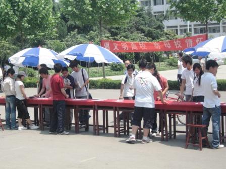 5月8日上午,环境与规划系本着“维护优良校风,构建和谐校园”的宗旨,在文化路校区图书馆广场举办“倡文明离校,寄母校情怀”周末文化广场大型签名活动,环境与规划系党总支书记张喜庆、副书记贾永,团总支书记李琳莅临现场并指导相关工作。
