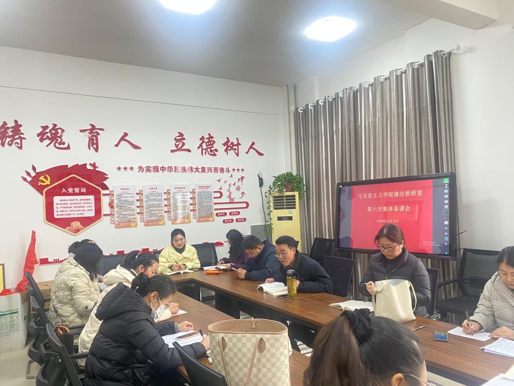 12月10日下午,pp电子官方网站入口思想道德与法治教研室开展第六次集体备课活动,教研室全体专兼职教师参加了此次会议,会议由教研室主任张丽丽主持。