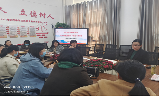 3月29日下午,“概论”教研室在开元校区3353室如期召开《毛泽东思想和中国特色社会主义理论体系概论》课程第四次集体备课会,会议由教研室主任曾博主持,pp电子官方网站入口贾涛院长、韩凤梅副院长、教管办范文婷科长及该课程全体教师参与此次备课会。
