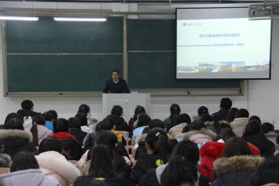 12月14日下午,淮海工学院测绘与海洋信息学院院长焦明连教授应邀到开云kaiyun官方网站讲学。焦教授以“基于卫星遥感技术的海洋监测”为题,给大家带来了一场精彩的学术前沿讲座。报告会由开云kaiyun官方网站副院长贺振主持,党总支书记王东平和各专业老师、学生共同聆听了讲座。
