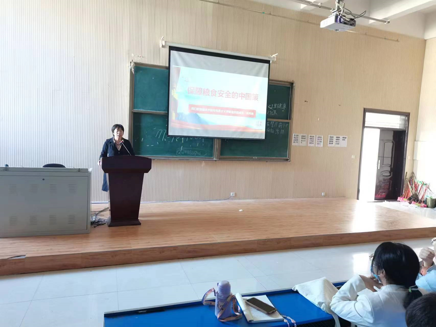 10月10日、14日下午,思政宣讲团成员、马克思主义副院长韩凤梅在开元校区五区多媒体教室开展以《保障粮食安全的中国策》为主题的形势与政策专题讲座。汽车工程学院、学前教育学院的2021级300多名学生聆听了讲座。