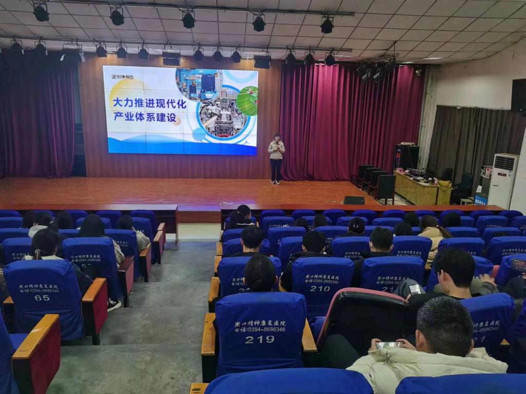 2023年12月7日下午,pp电子官方网站入口教师张丽丽在文昌校区报告厅为22级康复班学生上了一堂题为“大力推进现代化产业体系建设”的形势与政策课。