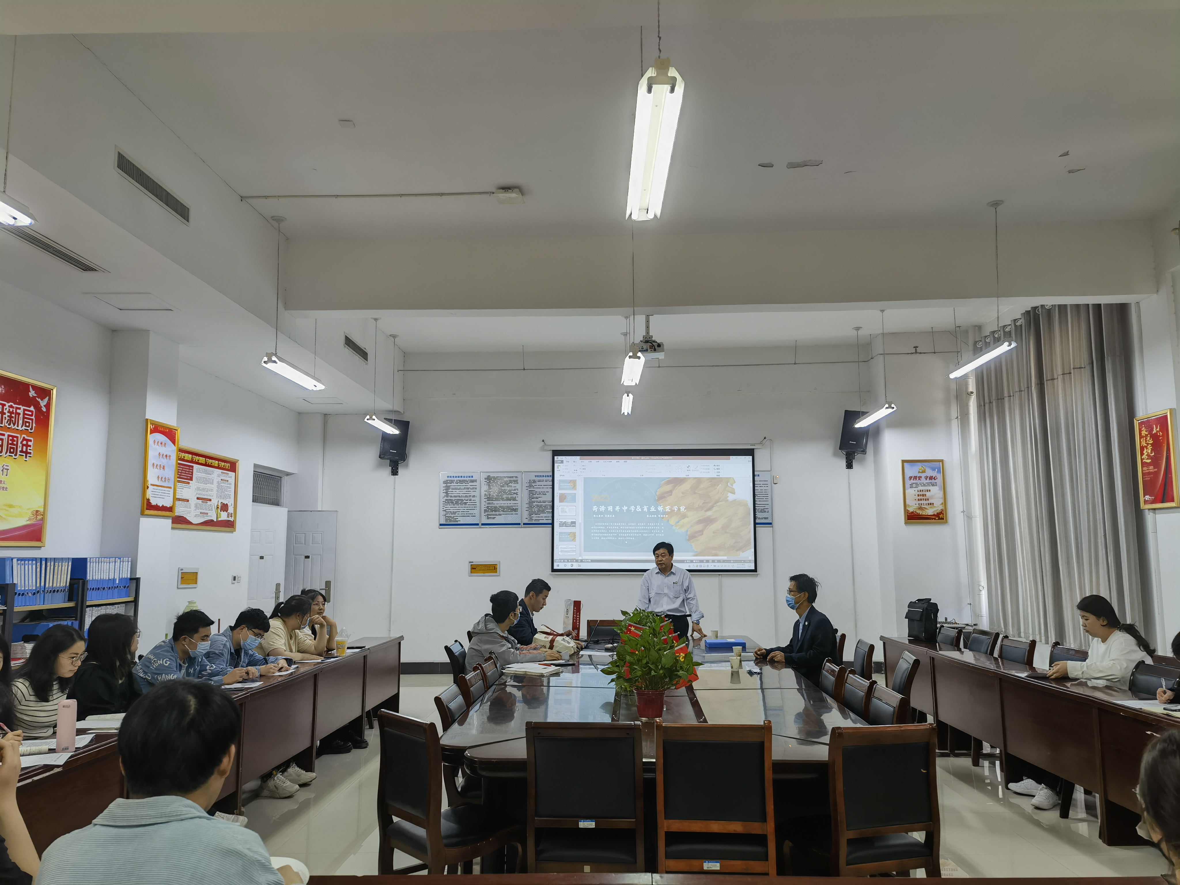 菏泽国开中学校长吕杰、 教导主任刘元、2022级级部主任王大林、综合办公室主任张辉、行政专员陈志栋,开云官网党委书记时光、院长贺振、党委副书记王丽、辅导员李洁参加签约仪式。