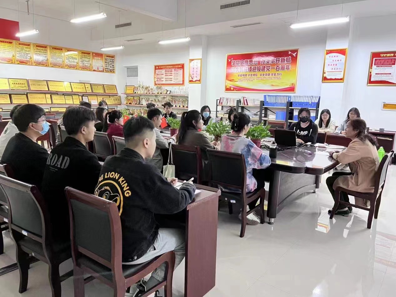 首先,王丽带领全体同志仔细阅读了习近平总书记给中国农业大学科技小院的回信,并提出了“怎样理解实事求是?”和“怎样联系群众?”这两个问题,各位党员同志就此展开了讨论,并进行了发言。随后,王丽针对“把课堂学习和实习实践紧密结合”进行深入分析,并指出青年人应该脚踏实地、志存高远。