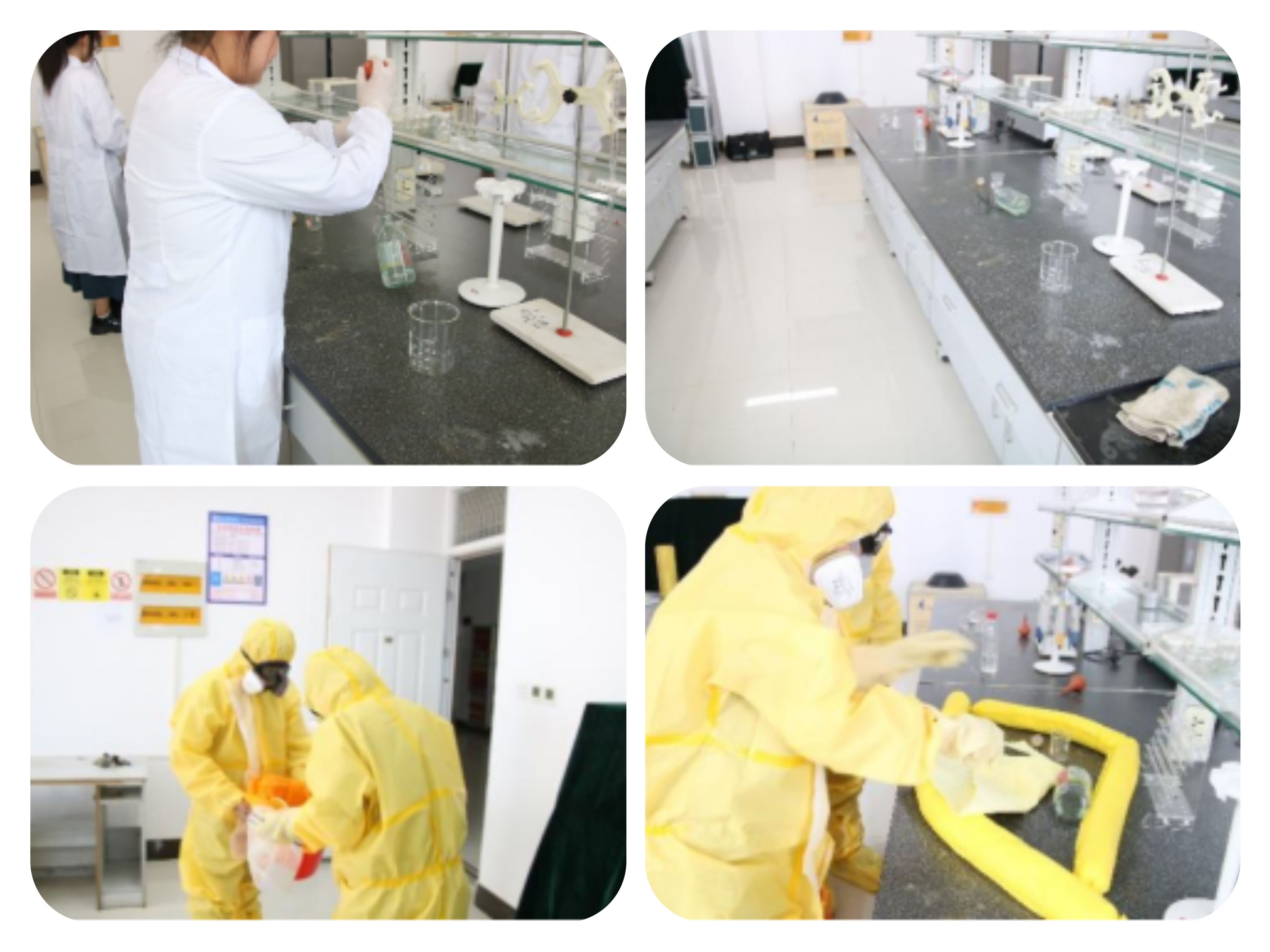 为进一步检验和提升学院安全应急小组对危险化学品突发事件的应急响应和处置能力,2023年6月15日下午3时,开云官网实验室安全应急小组和相关专业老师,组织开展了实验室危险化学品泄漏事故的应急演练。