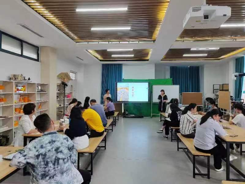 朱新玉教授首先向大家介绍了学校“1124+N”校本培训框架。丁锦平从课程建设背景、如何进行第一课堂与第二课堂有机融合,将思想政治教育、专业教育与社会服务紧密结合的课堂建设思路,以及课程三个层面三位一体的课堂内容重构,课前调研,课中作品创作与点评,课后的创新创业与服务社会三步实践课堂教学方法进行了分享。