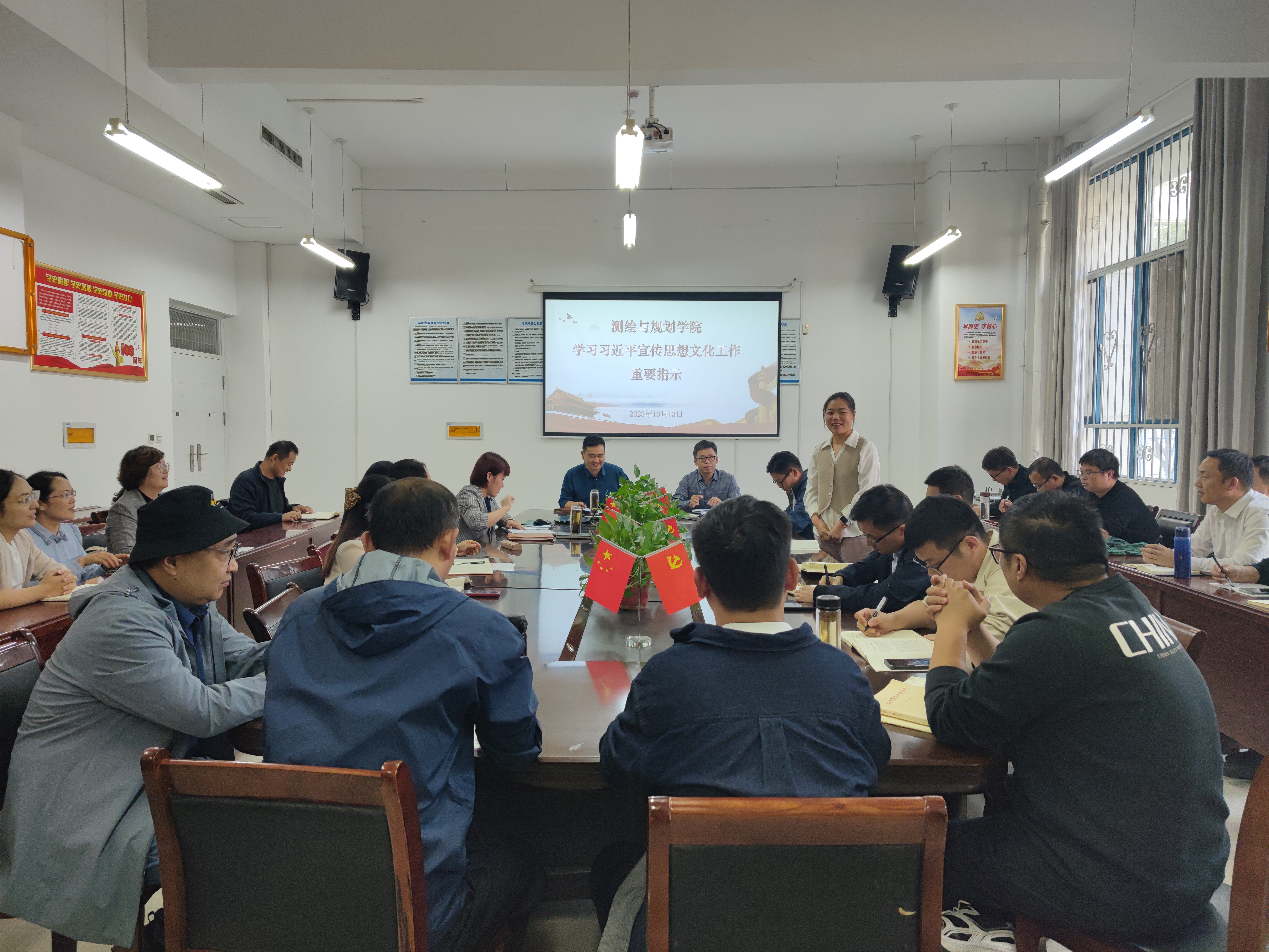 会上,学院党委书记时光领学了习近平总书记对宣传思想文化工作重要指示精神。习近平总书记指出,宣传思想文化工作事关党的前途命运,事关国家长治久安,事关民族凝聚力和向心力,是一项极端重要的工作。新时代新征程,开展宣传思想文化工作要坚持以习近平新时代中国特色社会主义思想为指导,坚定文化自信,着力加强党对思想文化工作的领导,不断开创新时代宣传思想文化工作新局面。
