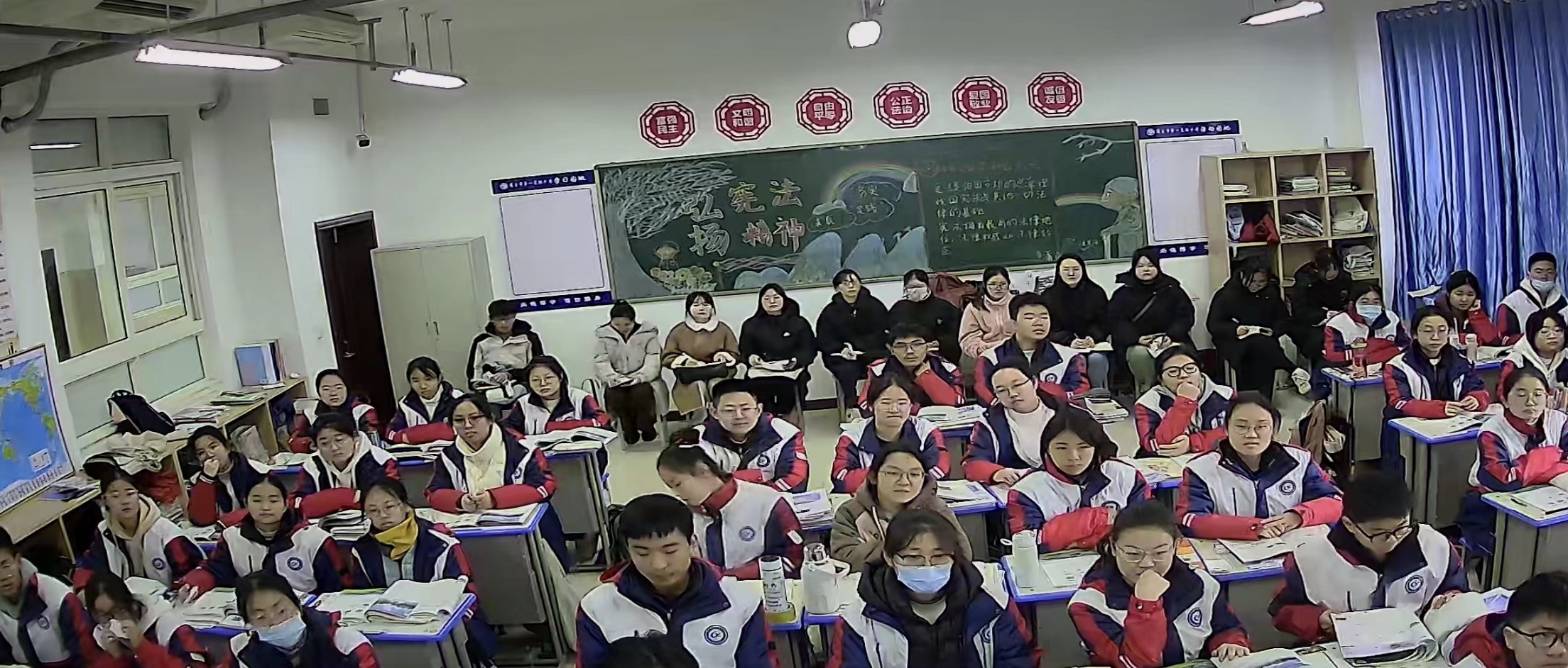 同学们走进课堂,亲身体验课堂氛围,在老师的带领下实地观摩了地理课堂教学,老师细致的讲解和高中生跳脱的思维以及活跃的课堂气氛使同学们深深地沉浸在其中。同学们不仅学习到了许多的教学方法和技巧,更感受到了优秀高中教师如沐春风般的授课态度和方式。