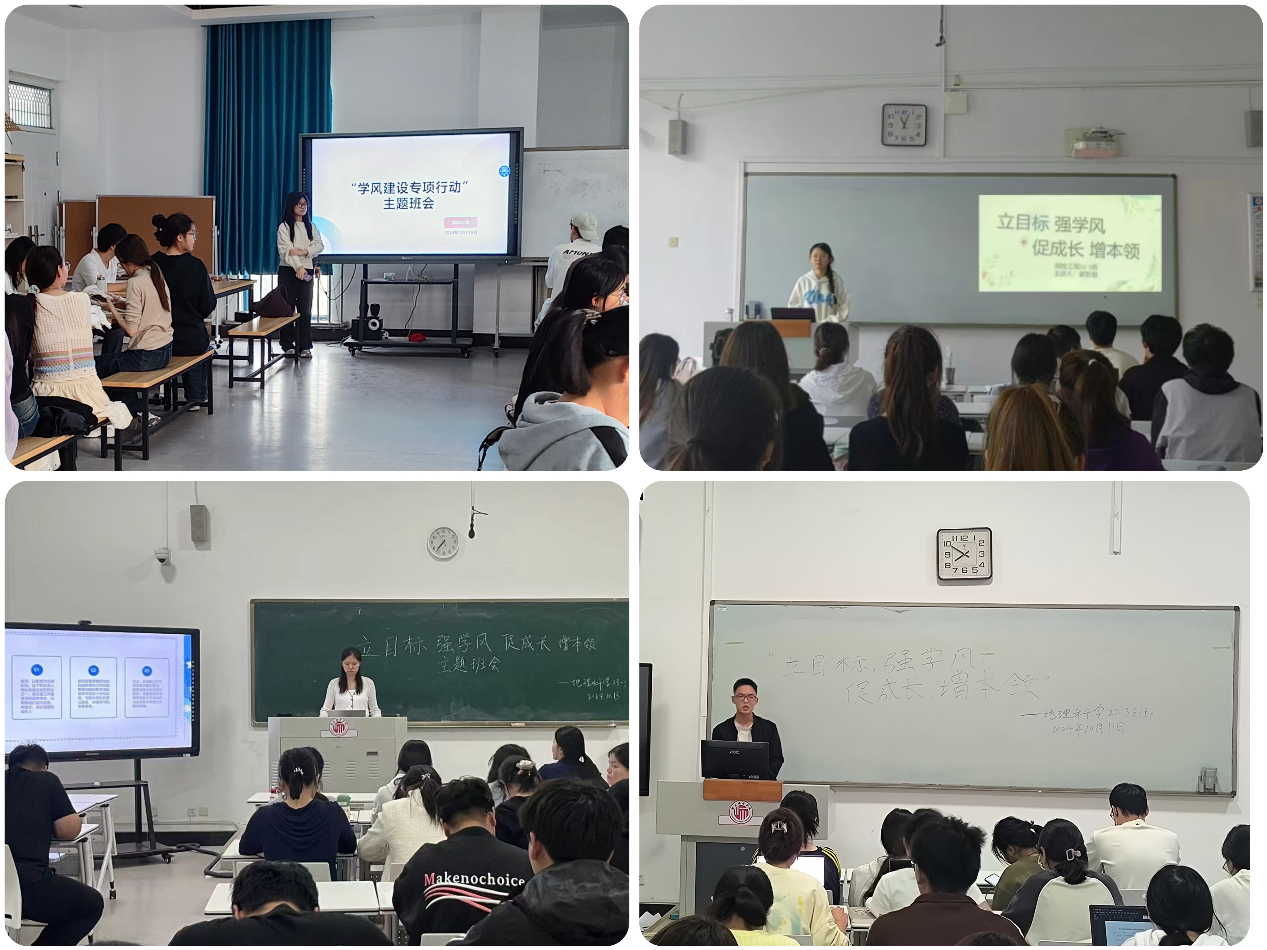 为引导学生树立正确的世界观、人生观和价值观,强化班风学风建设,促进学生德智体美劳全面发展,2024年10月10日至18日,开云官网各班级召开“立目标、强学风、促成长、增本领”主题班会。