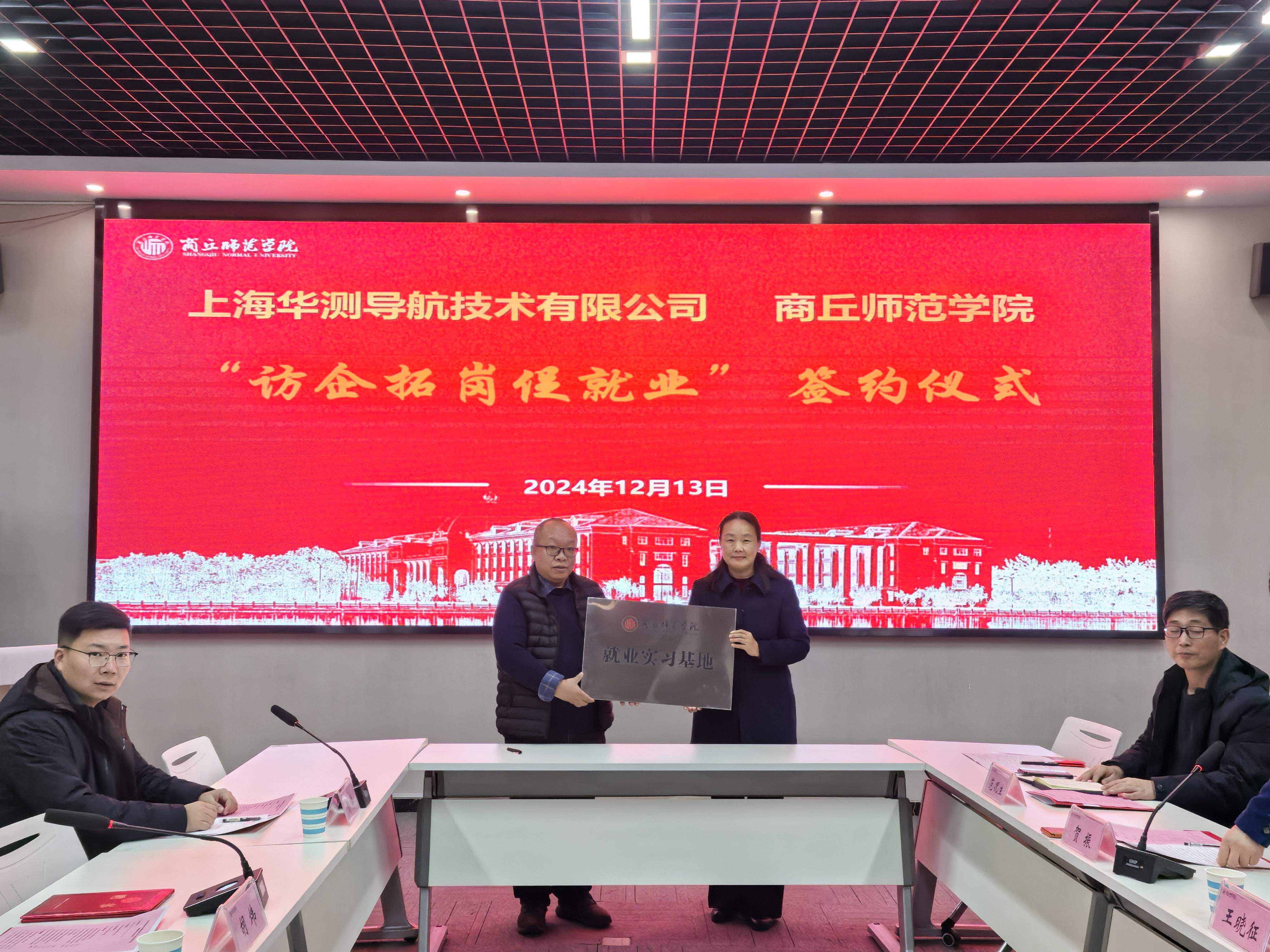 最后,王晓征、胡炜分别代表商丘师范学院与上海华测签订了《商丘师范学院大学生就业实习基地协议书》并举行了就业实习基地授牌仪式。