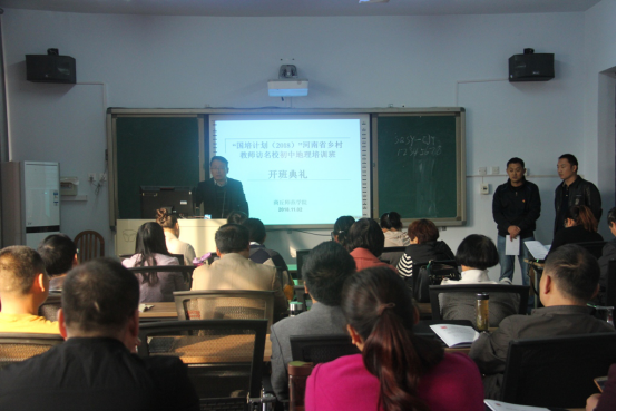 11月3日上午,开云kaiyun官方网站在睢阳校区继续教育学院403教室,举行了“国培计划(2018)”——河南省乡村教师访名校初中地理培训班开班典礼。项目首席专家李学鑫教授、学科班主任李红忠副教授、生活班主任魏理老师与班级全体学员参加了开班仪式。仪式由学科班主任李红忠主持。