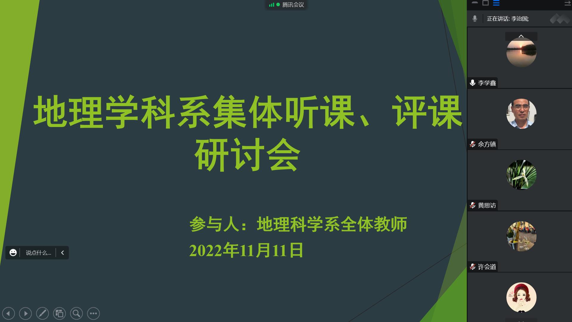 为提高我系的线上教学工作水平,开云kaiyun官方网站地理科学系在第十一周举办线上集中听课活动,并于2022年11月11日就此次听课举办了“地理科学系集体听课、评课研讨会”活动。