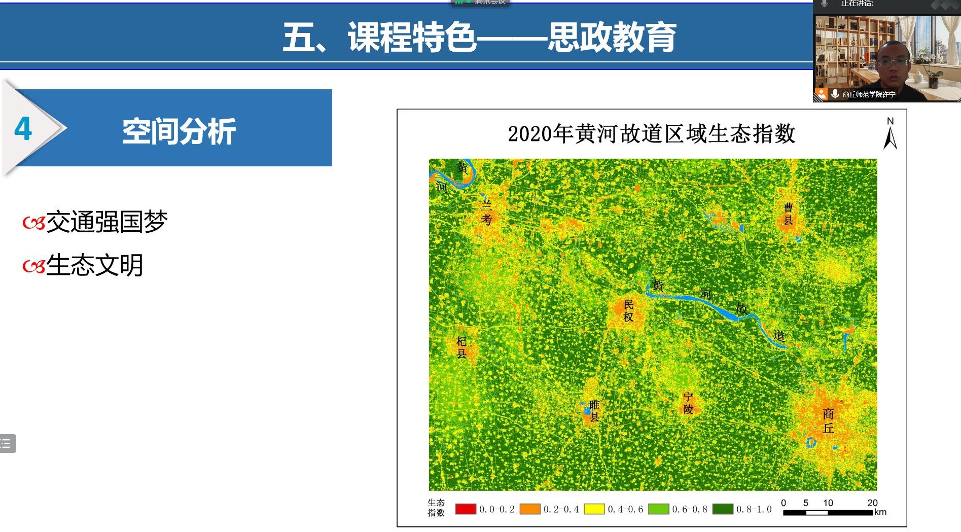 许宁老师汇报了《GIS软件应用》课程已开展的课程思政工作,分享了“学科竞赛驱动—课程思政沉浸—教学改革推动—综合能力培养”的课程思政教学改革模式。