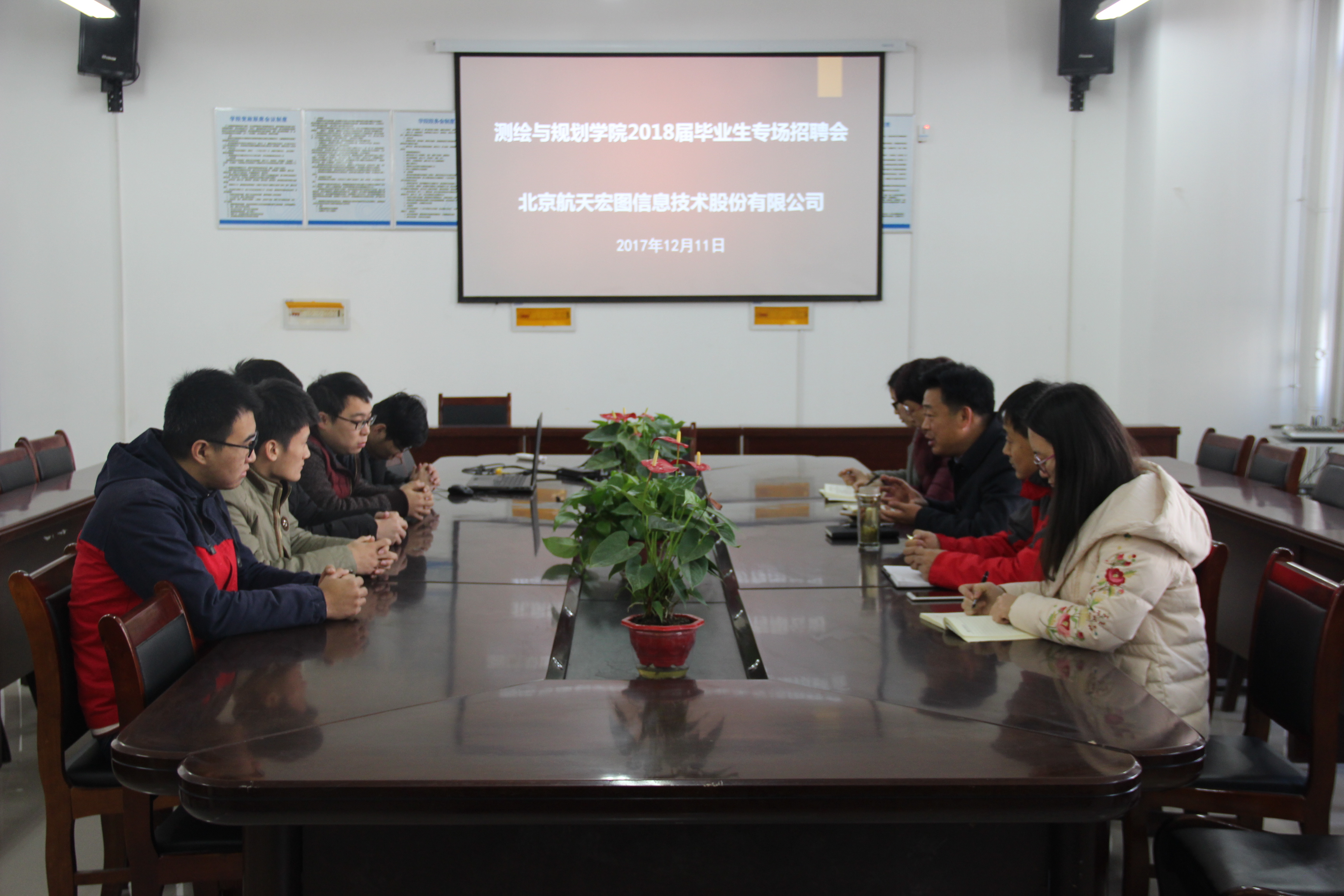12月11日上午,北京航天宏图信息技术股份有限公司郝经理一行到开云kaiyun官方网站举行专场招聘会。开云kaiyun官方网站党总支书记王东平、副书记李琳、团总支书记路璐、就业专员魏理、毕业生辅导员寇亚莉出席本次招聘会。会议由王东平书记主持。