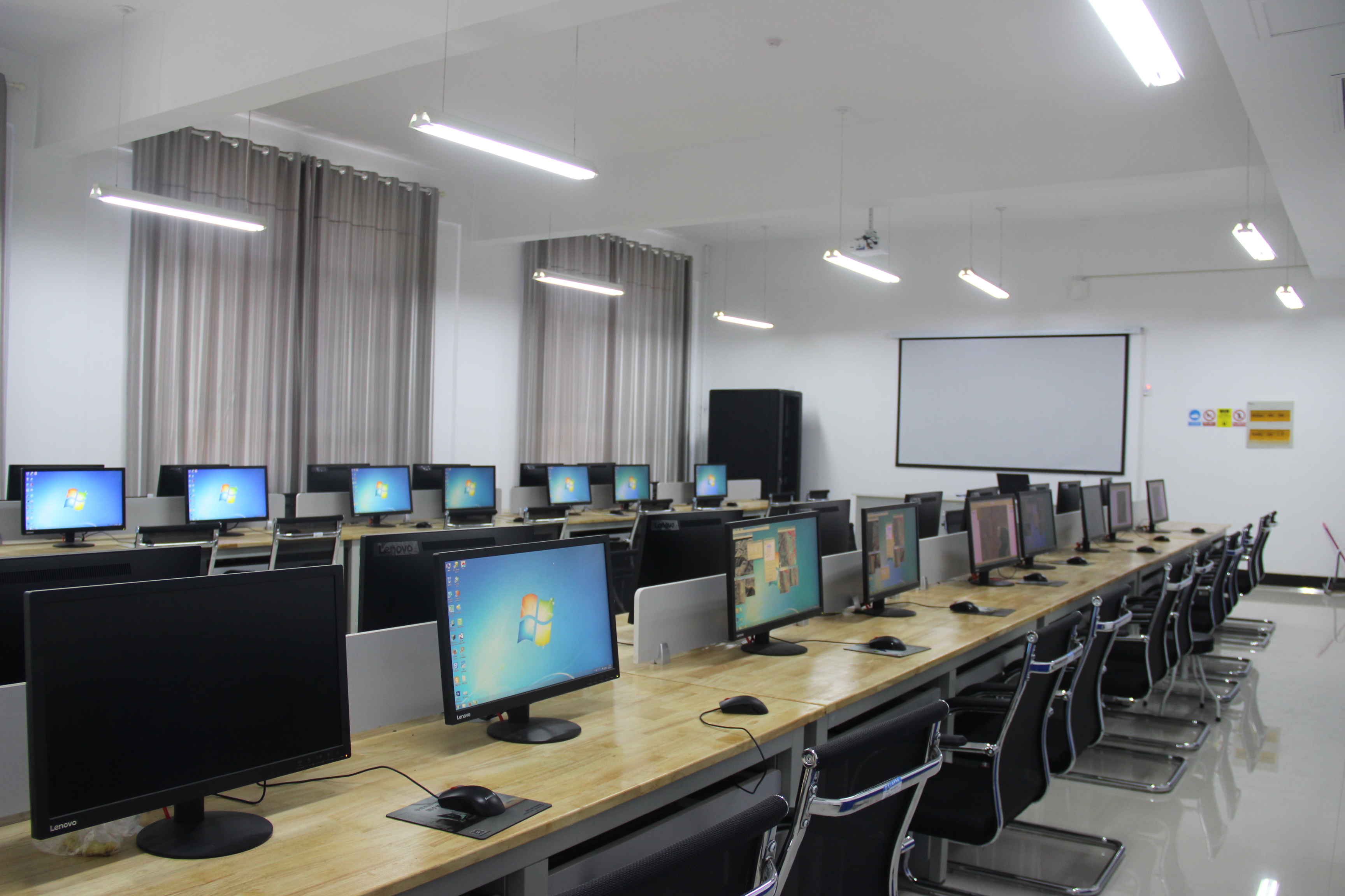 本实训室侧重于对卫星、无人机等航空航天测量手段获取的数据进行处理和实训等工作,是北斗学院下设实习实训重点实验室之一,主要实验仪器有哈瓦工业级四轴八旋翼无人机一架、五镜头倾斜摄影系统一套、无人机地面站系统一套、高性能图形工作站6台、联想ThinkVision实验电脑35台,实验软件主要包括三维建模软件ContextCapture、GIS平台软件ArcGIS、倾斜摄影建模测量系统DP-Modeler、清华山维EPS等先进的专业软件,以及3ds Max、AutoCAD、CASS、PhotoShop等常规工程类软件。能满足测绘、遥感、地信等专业同学进行空间位置服务相关实习实训任务。
